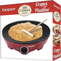 - BEPER BT.700Y Crepiera Elettrica, 1300 W, Plastica, Alluminio pressofuso, rinvestimento Antiaderente, Rosso/Nero