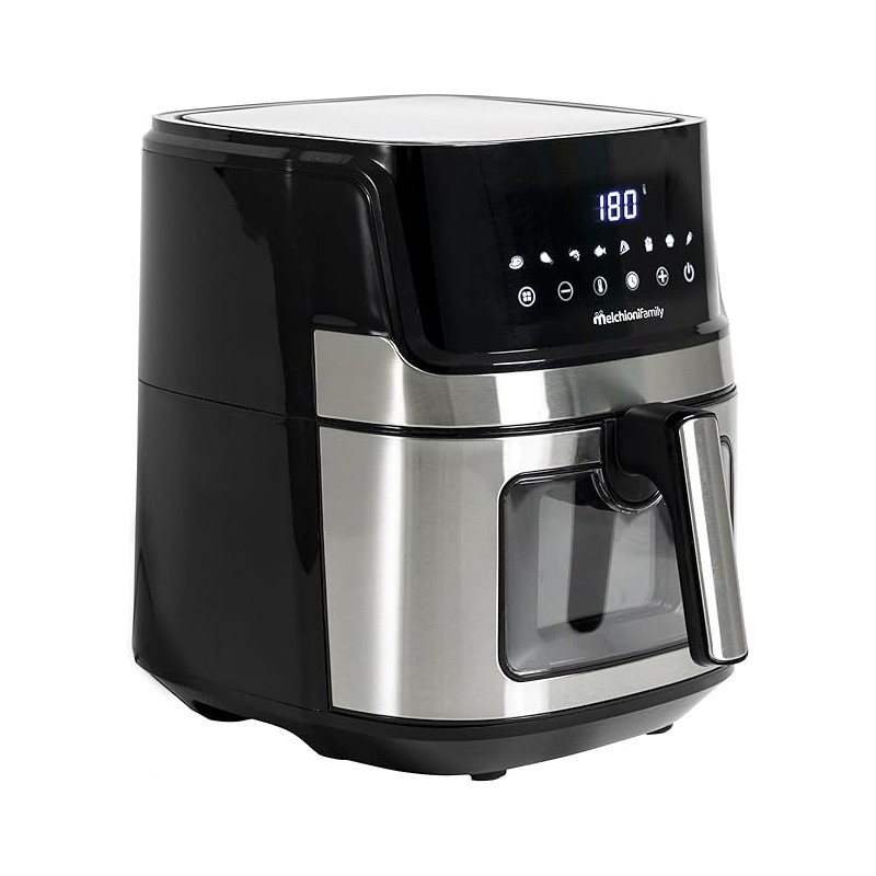 Melchioni Family | Friggitrice ad Aria Smart GINEVRA, Capacità 6,5L, Timer 1/60 minuti, con Wifi e Compatibile con Google e Alexa, Air Fryer Multiprogramma con App, 80-200°, 1600 W, Colore Nero