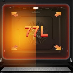 - Cavità XXL 77 L: La cavità da ben 77 litri è tra le più grandi del mercato e permette di cucinare pietanze di grandi dimesioni e soprattutto di sfruttare in combinazione con la termo ventilazione, la cottura simultanea multilivello.