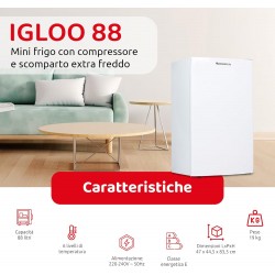 - Comparto extra freddo per una refrigerazione superiore: Il comparto extra fresco è uno dei punti di forza del mini frigo IGLOO 88: ideale per mantenere latticini, carne, pesce o bevande particolarmente fredde. Questo vano dedicato amplia le funzionalità del frigorifero piccolo, rendendolo ancora più versatile e adatto anche alle esigenze di chi cerca prestazioni quasi professionali in un formato compatto.