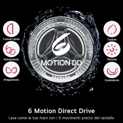 - 6 MOTION DIRECT DRIVE: lava come le tue mani grazie ai 6 movimenti precisi del cestello, migliorando la qualità del lavaggio in base al programma che selezioni