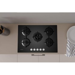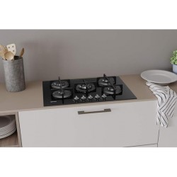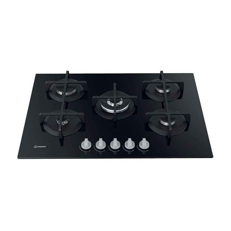 INDESIT ING 72T/BK PIANO COTTURA 5 FUOCHI GAS GRIGLIE GHISA VETRO NERO ING72T/BK